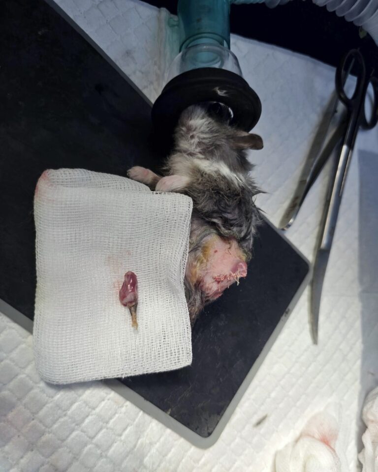 This little guy survived surgery for two tumors, an amputation, wet tail and a broken teeth from evacuating from an earthquake – all in the span of 3 weeks!