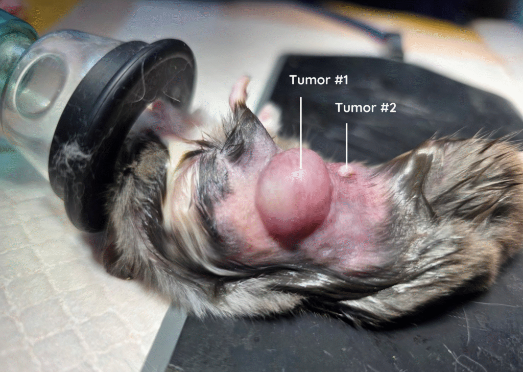 While the tumor was quite big, I was only able to see it when I flipped Picco over on his tummy for our weekly check up. Because he had no symptoms and the mass was on his stomach, I am unsure how long it had been growing before I spotted it (something I deeply regret) — the doctor later estimated it had been growing for 1–7 days.